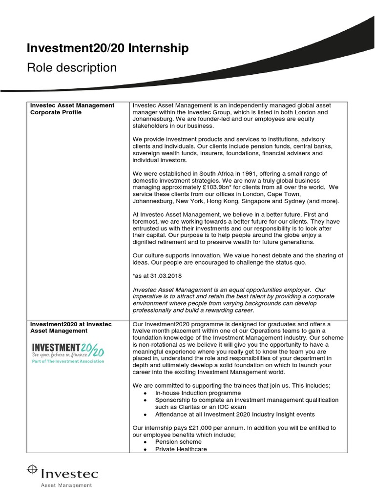 We are looking for a driven accounting intern with a basic understanding of gaap and financial principles our accounting internship job description can be customized to better reflect your company's needs. For further enquiries on the internship role, you may email the this position reports to the manager of the adventure centre and director of clinical services. Browse intern jobs in asset management. Find and research asset management intern jobs, salaries and reviews today! When you're ready to post an accounting.